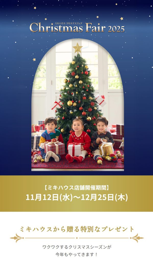 クリスマスフェアは、全国のミキハウス店舗とオフィシャルサイトで開催します。